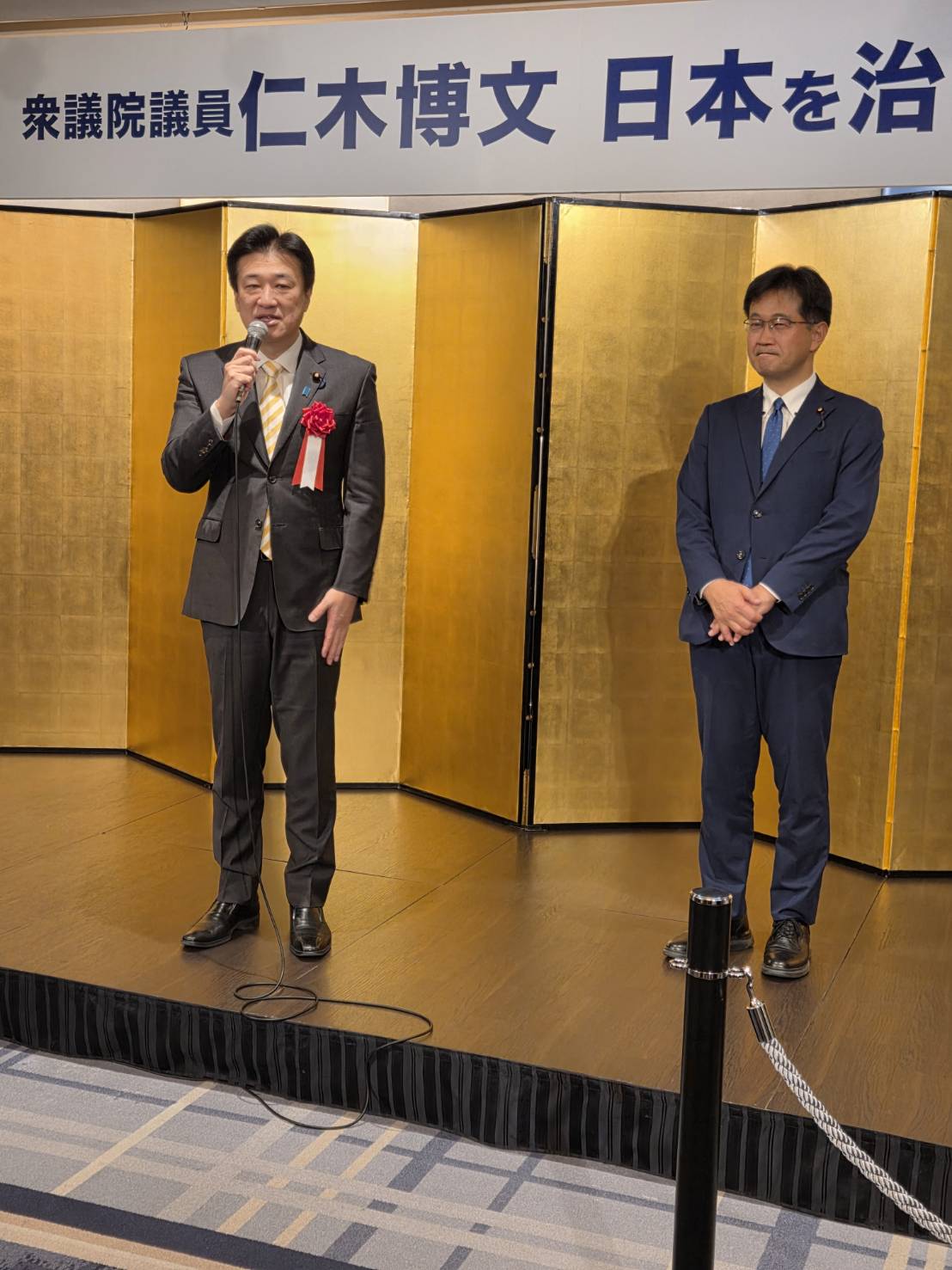 2025年11月27日、ホテルニューオータニにて開催された、衆議院議員・仁木博文厚生労働副大臣による「日本を治療する会」に、参加いたしました。